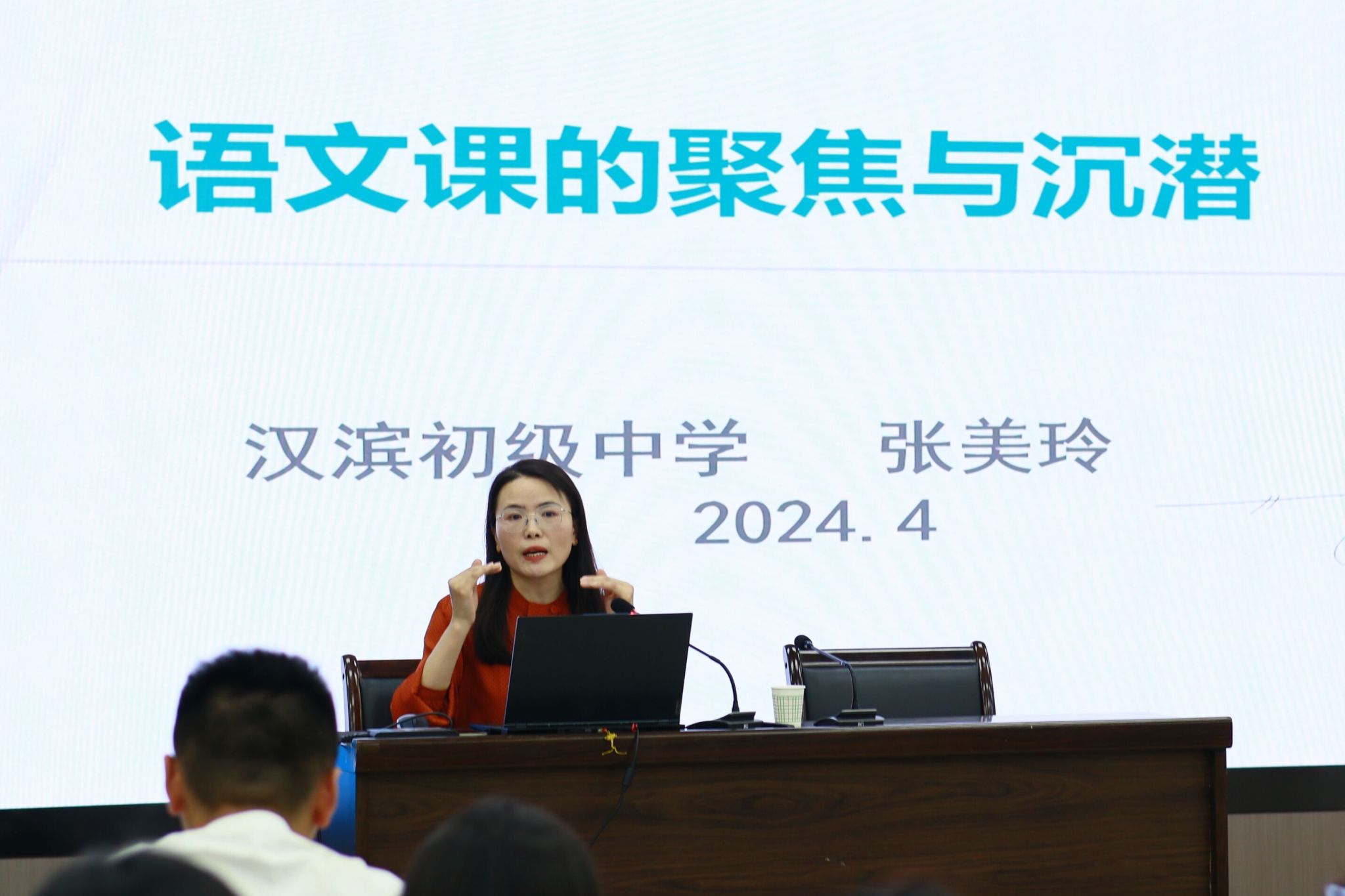2024年424日下午点半,在图书馆六楼报告厅,pp电子网站邀请到汉滨初级中学陕西省教学能手张美玲老师为第三届“中学语文卓越师资班”带来题为《语文课聚焦与沉潜》的精彩讲座。班主任唐明珍和“中学语文卓越师资班”全体学生聆听了本场讲座。