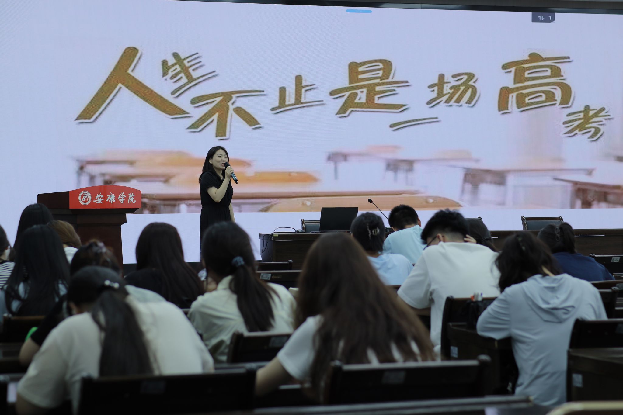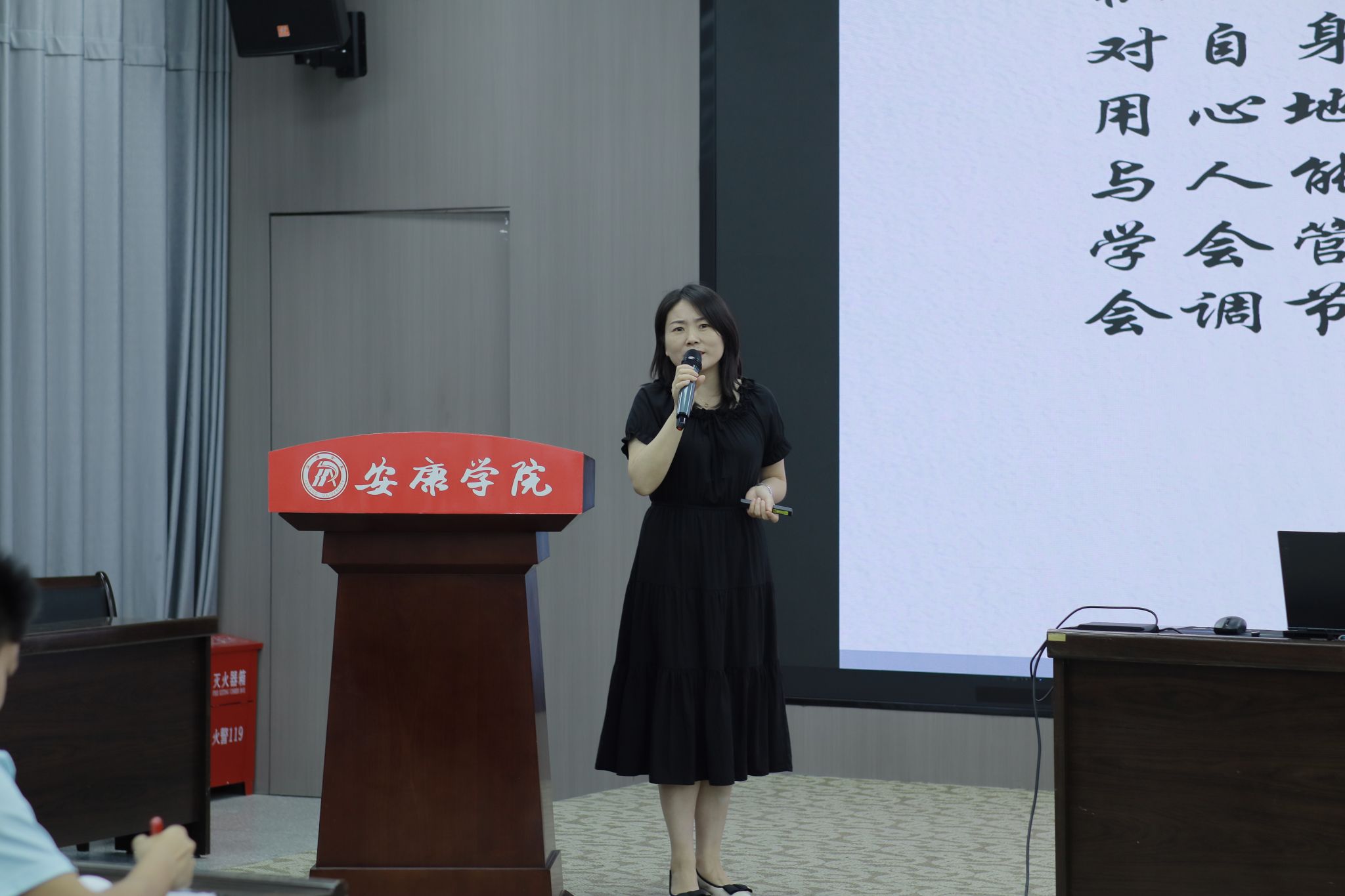 2024年6月5日下午14时30分,pp电子网站在图书馆六楼报告厅举行“中学语文卓越师资班”第十一场讲座,本场讲座邀请到汉滨高级中学永红校区陕西省教学能手王密老师带来题为《磨砺内功笃潜行,微型课上展风采》的讲座。班主任唐明珍和“卓越师资班”全体同学聆听了本场讲座。