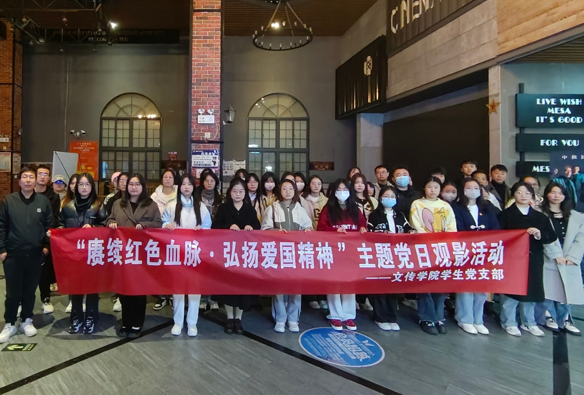 为进一步弘扬爱国主义精神,厚植爱国情怀,11月12日上午,pp电子网站第一、第二党支部组织支部成员走进电影院开展“赓续红色血脉,弘扬爱国精神 ”主题党日观影活动。pp电子网站学生第一党支部书记许明、学生第二党支部书记薛涛,学生支部全体党员及部分发展对象积极分子共计47人参了本次主题党日活动。