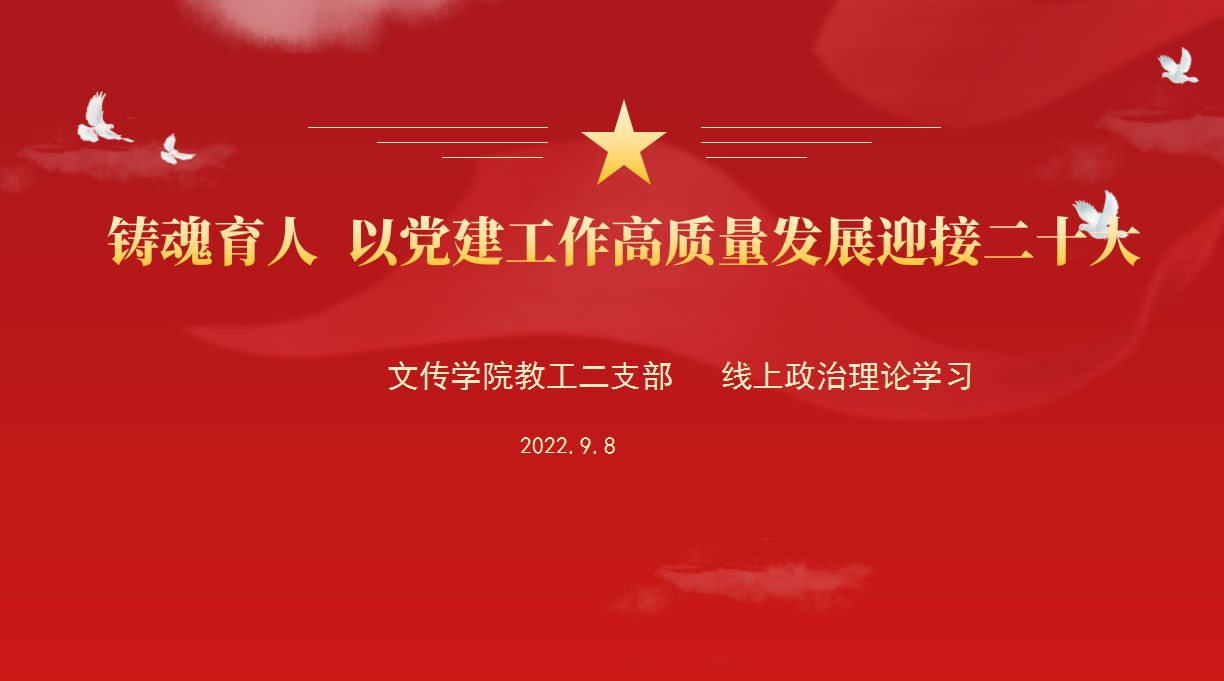 9月7日下午,pp电子网站教工第二党支部在线上召开“铸魂育人,以党建工作高质量发展迎接二十大”理论学习会。党支部全体党员参加会议。会议由党支部书记邸玲主持。