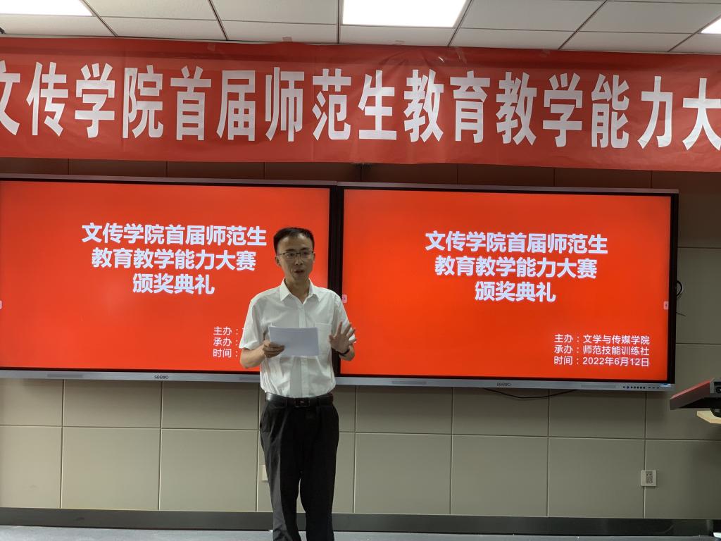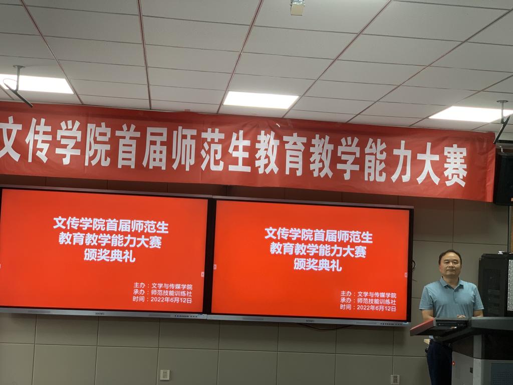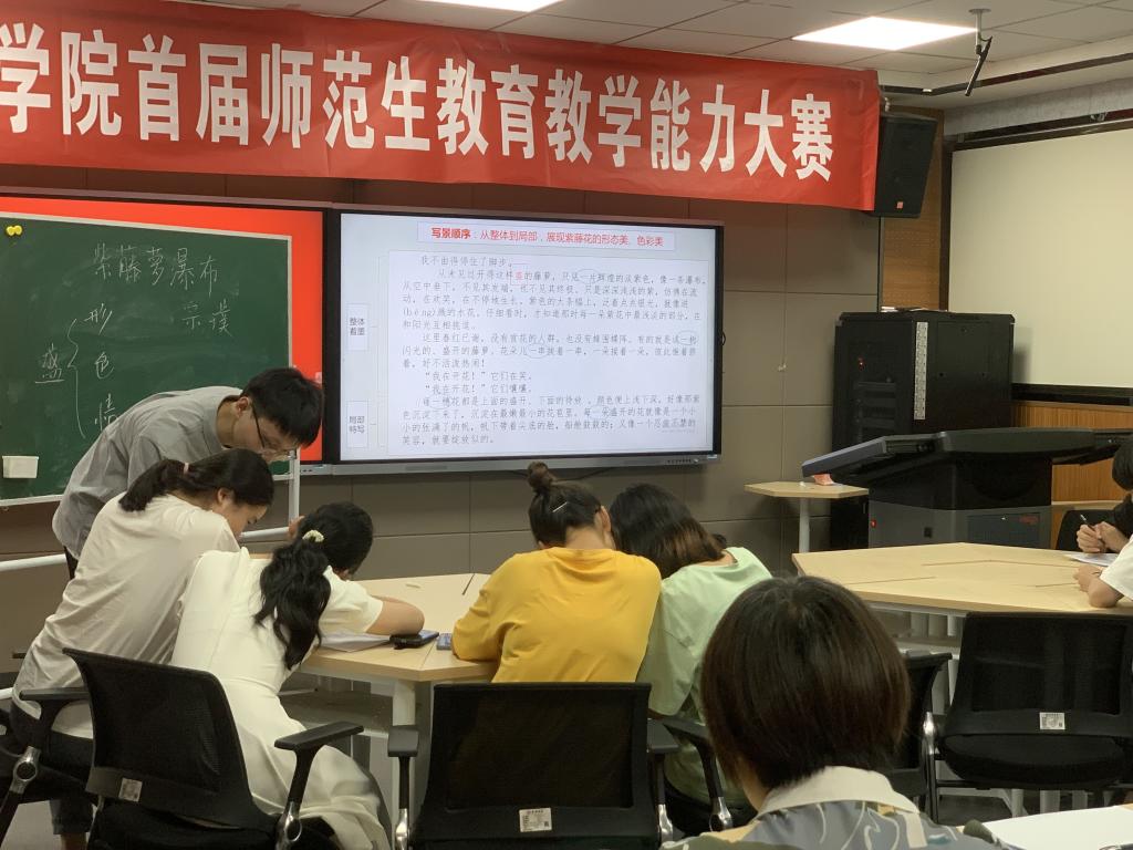 2022年6月12日,由师范技能训练社承办的pp电子网站首届师范生教育教学能力大赛在学校师范生职业技能训练中心4204教室隆重举办。本次大赛特邀安康市汉滨区教研室高级教研员李玉恒老师,汉滨初级中学校长助理、教务主任全东老师,pp电子网站教学督导邸玲老师共同担任评委。pp电子网站党总支书记芦伟、副院长朱云、党总支副书记杨海蓉、汉语言文学系主任韩文霞、语文学科教学论任课教师、师范技能训练社指导教师张格瑄在现场观摩比赛。本次大赛采用网络同步直播的方式进行,学院其他教师和学生通过校园网观摩了比赛过程。