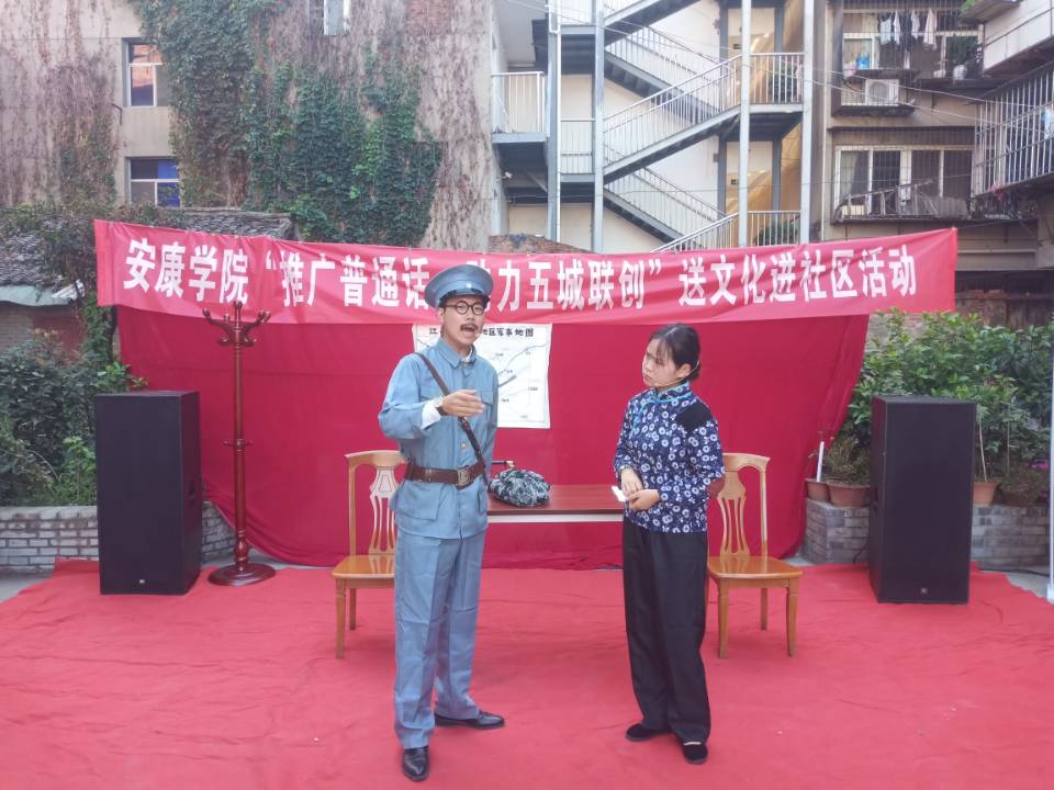 为推进社区群众讲好普通话,助力城区“五城联创”工作,丰富群众文化生活,加强大学生与社区居民之间的文化交流。9月4日,共青团pp电子网站委员会组织志愿者、pp电子网站语言文字社社员在团委副书记张慧、pp电子网站党总支副书记杨海蓉、pp电子网站团总支书记彭潇、pp电子网站教师邹棠华的带领下来到老城办事处莲花巷社区开展了“推广普通话,助力五城联创”送文化进社区活动。育才社区党支部书记陈治改受邀参加了此次活动。