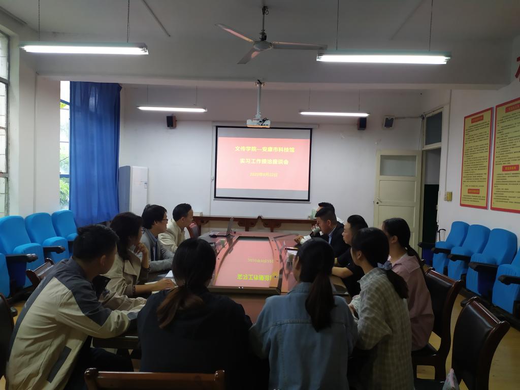 9月22日下午,pp电子网站召开了秘书学专业2017级校外实习工作接洽座谈会。pp电子网站院长杨运庚、副院长朱云,安康市科技馆馆长刘正武、副馆长陈同磊,校内实习指导老师张燕以及6名实习学生参加了座谈。座谈会由朱云副院长主持。