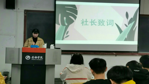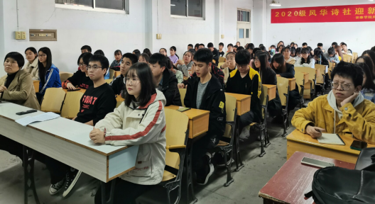 在主持人激昂的开场白后,新生见面会正式开始。首先,本届社长周倜上台发言。她先是对大家的到来作出欢迎,随后对社团进行了介绍。在介绍中她强调,风华诗社作为pp电子网站下设的九大社团之一,将继续以“继承优秀传统文化,弘扬爱国爱民精神”为原则,举办各种形式多样的活动,为社员们的学习交流提供更好的平台。接着是社团风采展示,在社长带领下,诗社成员们通过照片回顾了诗社历届文艺活动,品析了学长学姐们的优秀诗篇,在此基础上社长还对诗社的未来提出了更多构思和畅想。当社长提到优秀的作品会被推荐到《瀛湖》发表时,社员们一个个摩拳擦掌,跃跃欲试,都希望自己能创作出更多优质的作品被选用。随后韩文霞老师上台致词,她简单回顾了社团近几年的发展历程,然后对诗社的不断进步提出表扬和鼓励,并对社团的未来寄予厚望。当提到文学创作时,她谈道:对待文学我们需要端正态度,要积极、主动地利用好身边的资源去学习和创作。在诗社这个大家庭里,大家可以共同交流,相互借鉴,用文字表达自己内心最真挚的情感。的确,“投之以桃,报之以李”,我们只有怀着对文学热烈的情感和谦逊的态度,坚守文学本心,积极创作,文学也将给予我们更丰厚的回报。韩老师的发言风趣幽默,引来阵阵笑声,但笑声过后其中的道理却又值得所有人回味深思。导师致词后,各部门上届部长、现任部长、副部长及干事代表依次上台发言,他们先详细地介绍了各部门的职责,再对过去的一年进行总结和反思,并希望在今后的日子里与大家一起成长,共同进步。活动最后由社长、副社长上台对本次见面会作出总结,并对新一年的社团工作做好新的规划和安排。