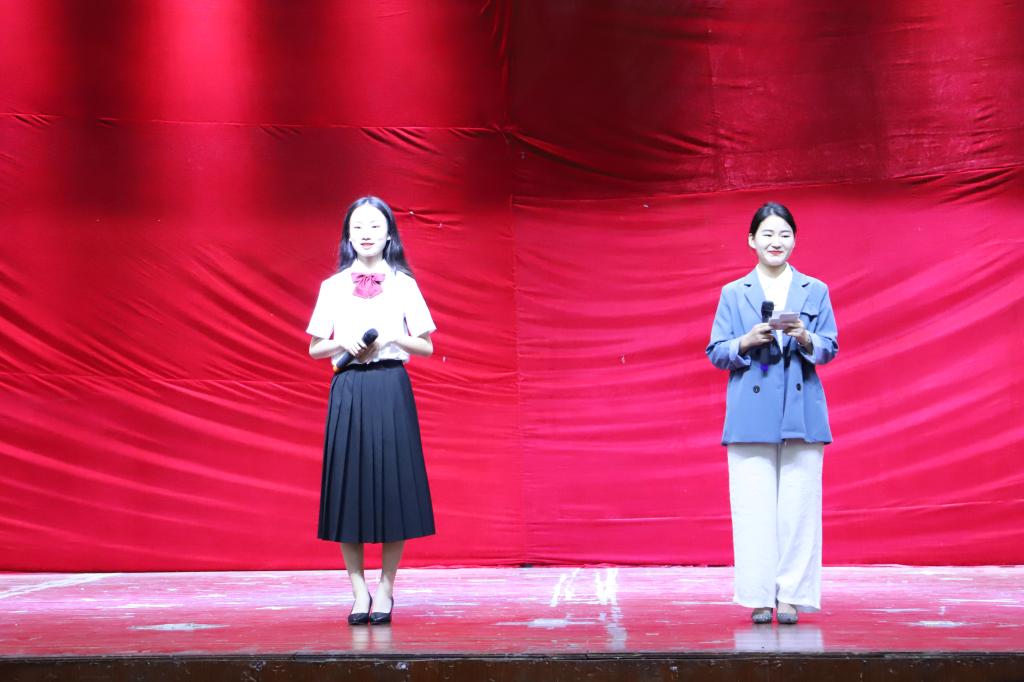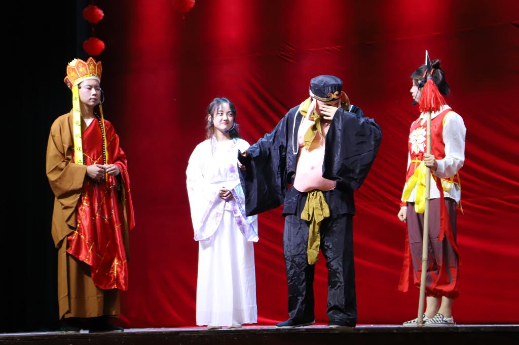 后半场的小品《师徒新传》逼真传神的造型、演员们精彩的表现让人捧腹大笑,同时也告诫同学们别做"低头族";古筝伴舞《琵琶行》舞姿轻灵,像花间飞舞的蝴蝶,赢得阵阵热烈的掌声。