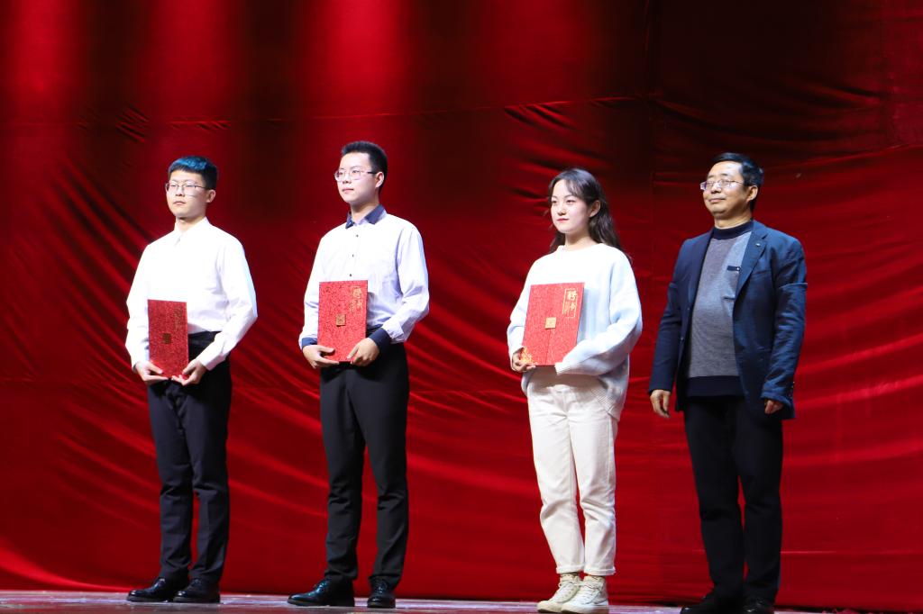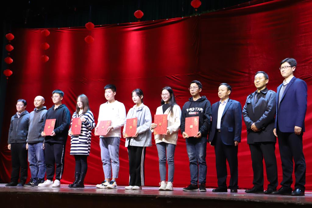 节目中间穿插了激动人心的颁奖环节。pp电子网站为2017-2019年间在影视戏剧社活动中表现突出的陈钊、杨卓研、李洁、张炯、辛南南、乔昕六位同学颁发“校园艺术成就奖”。校保卫处处长王开忠,院长杨运庚,院党总支书记芦伟,保卫处副处长郝礼军,副院长朱云等老师担任颁奖嘉宾为六位获奖同学颁奖。安康市戏剧家协会副主席、影视戏剧社指导教师邹棠华为影视戏剧社新一届社长梁少华,副社长张佳委、胡宇哲颁发聘书,希望同学们再接再厉,再创佳绩!